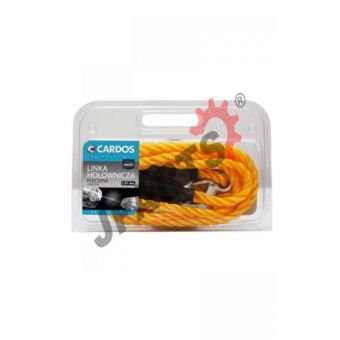 Lina holownicza jest wykonana z wodoodpornego tworzywa, zakończona po obu stronach solidnymi hakami z zabezpieczeniem przed wypięciem. Bez problemu pomoże odholować do mechanika auto średniej wielkości. Linka holownicza o długości 4 metrów i jaskrawym, żółtym kolorze pozwoli na bezpieczny hol pojazdu w każdych warunkach drogowych.