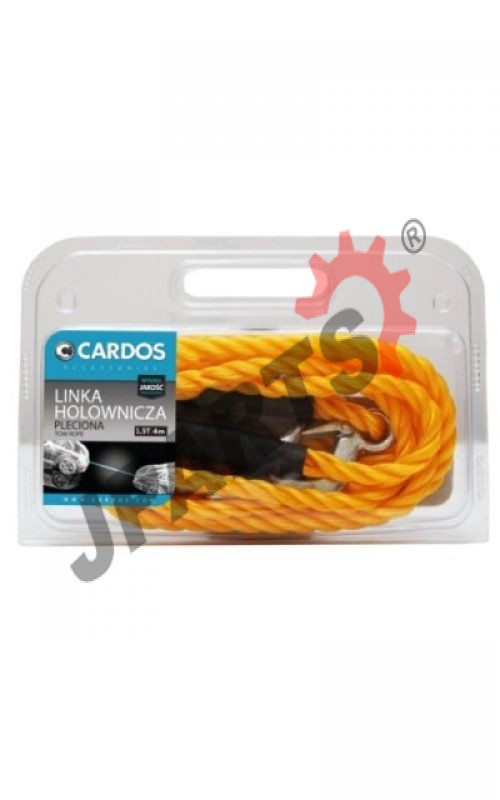 Linka holownicza pleciona z hakami - wytrzymała, wykonana z mocno skręconych włókien polipropylenowych, przeznaczona do holowania pojazdów o dopuszczalnej masie całkowitej nie przekraczającej 1500 kg.
