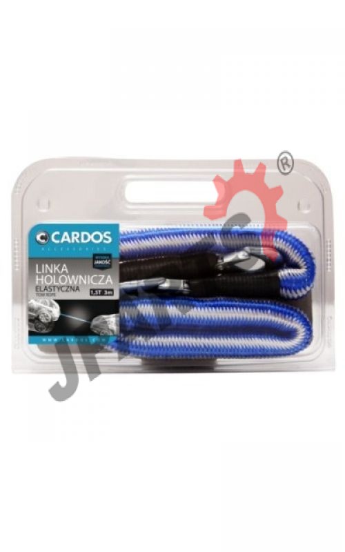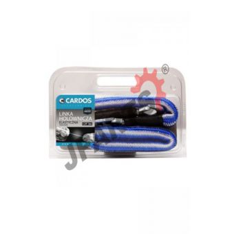 Linka holownicza elastyczna marki CARDOS - bardzo dobrej jakości. Zakończona po obu stronach hakami z zatrzaskami zapobiegającymi wypięciu się linki. Ma bardzo wysoką wytrzymałość i rozciąga się w zakresie 1,5 - 3 metrów, dzięki czemu zmniejsza dyskomfort i odczucia szarpania w czasie holu.