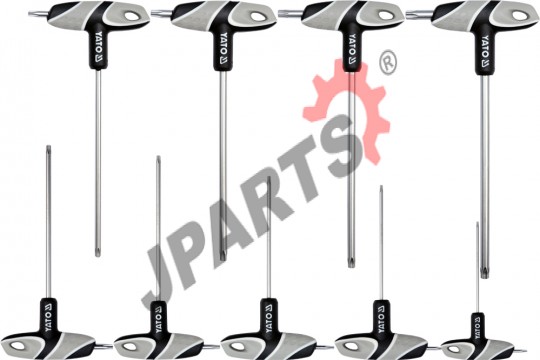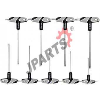 Profesjonalny zestaw kluczy trzpieniowych TORX z rękojeścią. Zestaw zawiera 9 elementów. Rozmiary T10, T15, T20, T25, T27, T30, T40, T45, T50. Trzpienie wykonane są ze stali S2. Niezastąpiony zestaw w warsztacie samochodowym i mechanicznym.