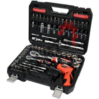 ZESTAW NARZĘDZIOWY 100 CZ. Z WKRĘTAKIEM AKUMULATOROWYM