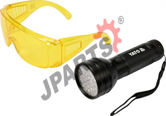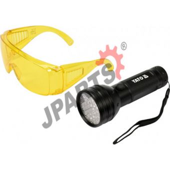 Latarka UV przeznaczona do diagnozowania układów klimatyzacji samochodowej za pomocą środka kontrastowego. 51 LED UV zapewnia mocny strumień promieniowania ułatwiający wykrycie nieszczelności. W zestawie okulary chroniące przed promieniowaniem UV, spełniające wymogi europejskiej dyrektywy dotyczącej sprzętu ochrony osobistej.