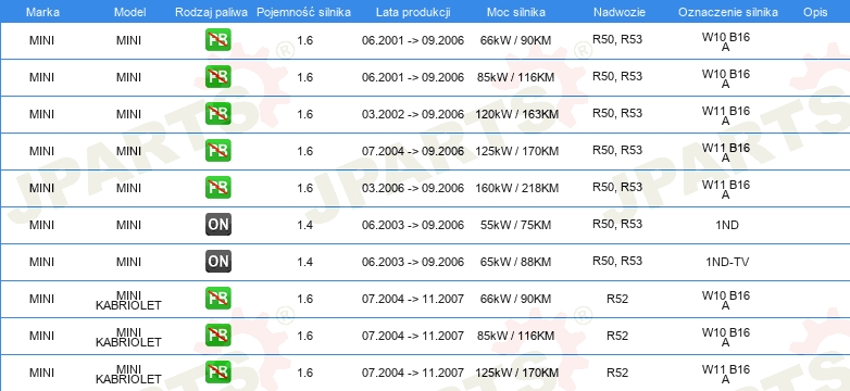| Strona zabudowy: | oś przednia po obydwu stronach |