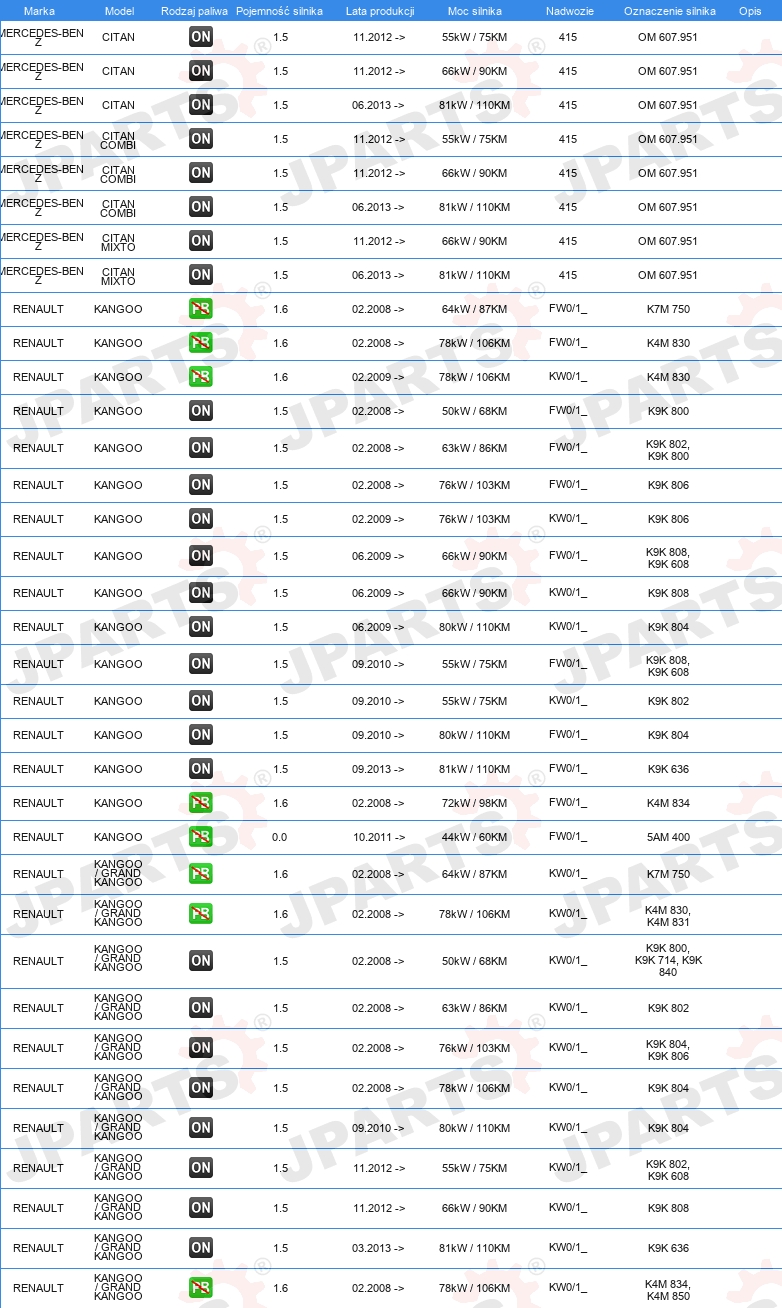 | Strona zabudowy: | oś przednia po obydwu stronach |