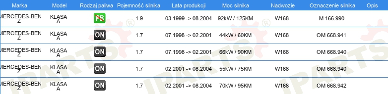 Informacje o części