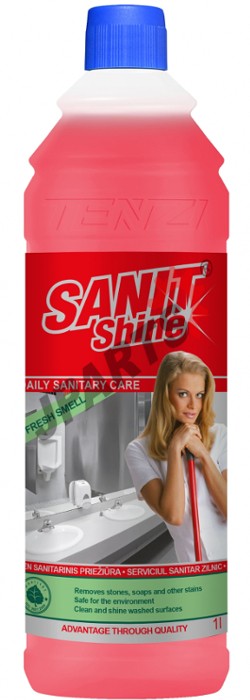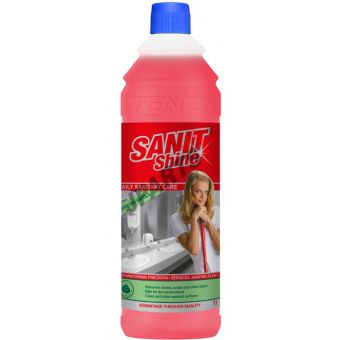 SANIT SHINE LŚNIĄCA ŁAZIENKA doskonale myje zanieczyszczenia w łazienkach oraz tworzy warstwę zabezpieczającą przed przywieraniem brudu.