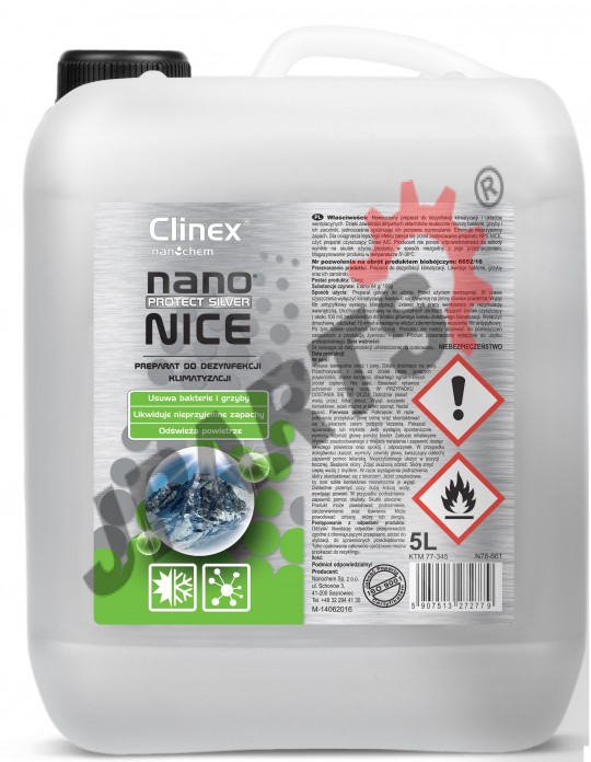 Gwarantuje doskonałą higienę wewnątrz pomieszczeń i samochodów, Dzięki zawartości aktywnych nanocząsteczek srebra likwiduje bakterie, grzyby oraz ich zarodniki opóźniając jednocześnie ich ponowne rozmnażanie. Eliminuje nieprzyjemny zapach. By osiągnąć lepszy efekt czystości zaleca się stosować wcześniej produkt Clinex A/C.