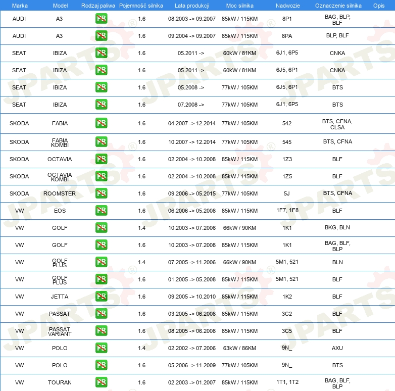 | W ZESTAWIE: | bez uszczelki miski olejowej |