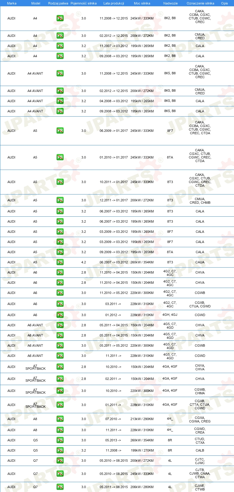 | Artykuł uzupełniający / informacja uzupełniająca 2: | bez uszczelki miski olejowej |