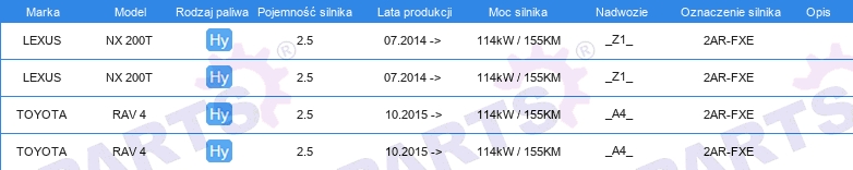 | Artykuł uzupełniający / informacja uzupełniająca 2: | bez uszczelki miski olejowej |