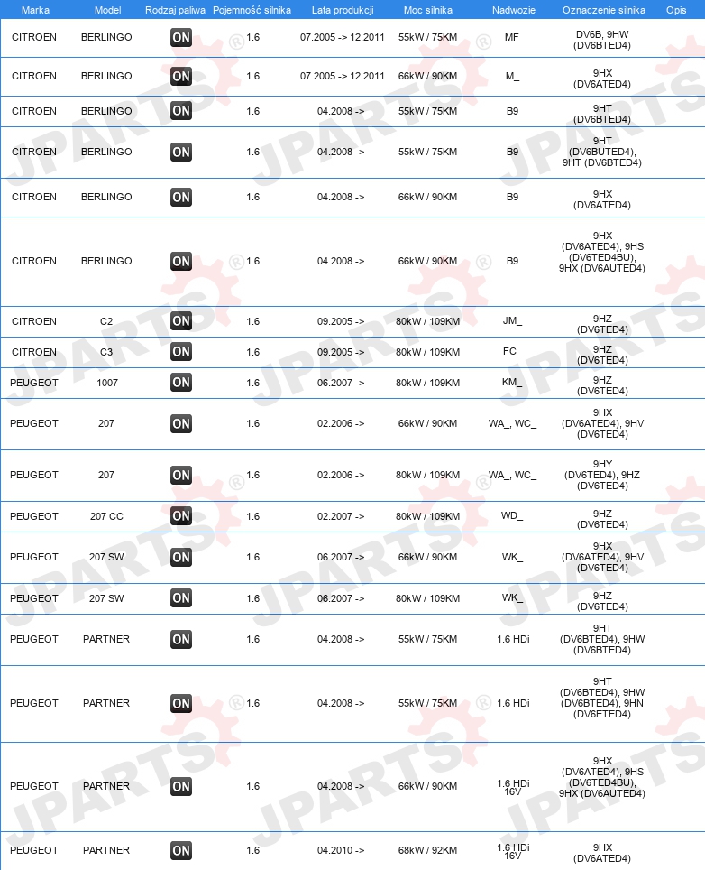 DLA NUMERU OE: