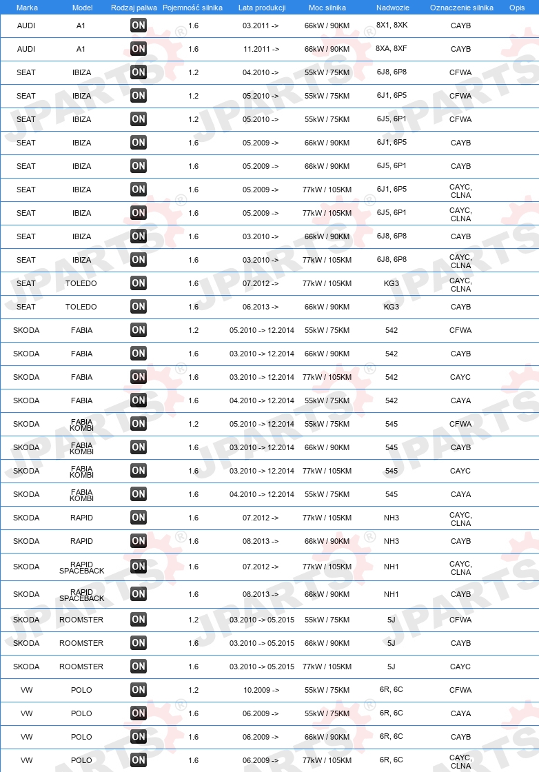 DLA NUMERU OE: