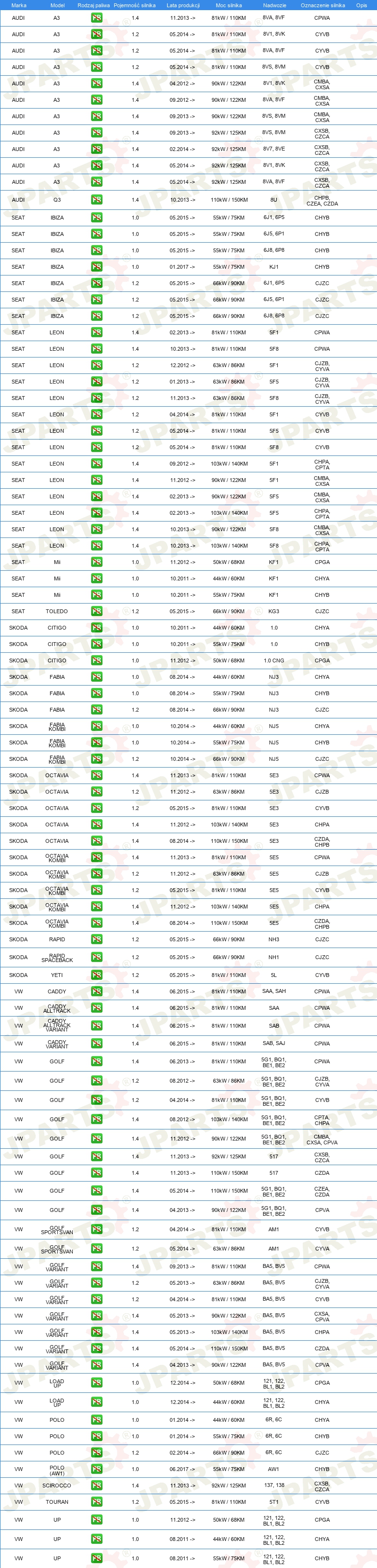 Części silnikowe