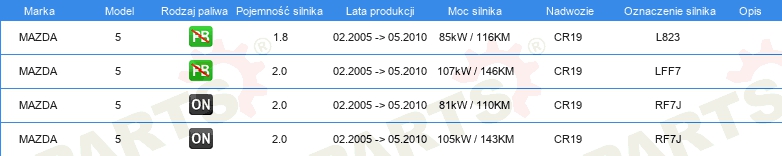 Informacje o części