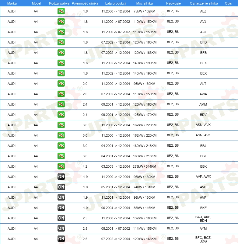 | Strona zabudowy: | z przodu po prawej |