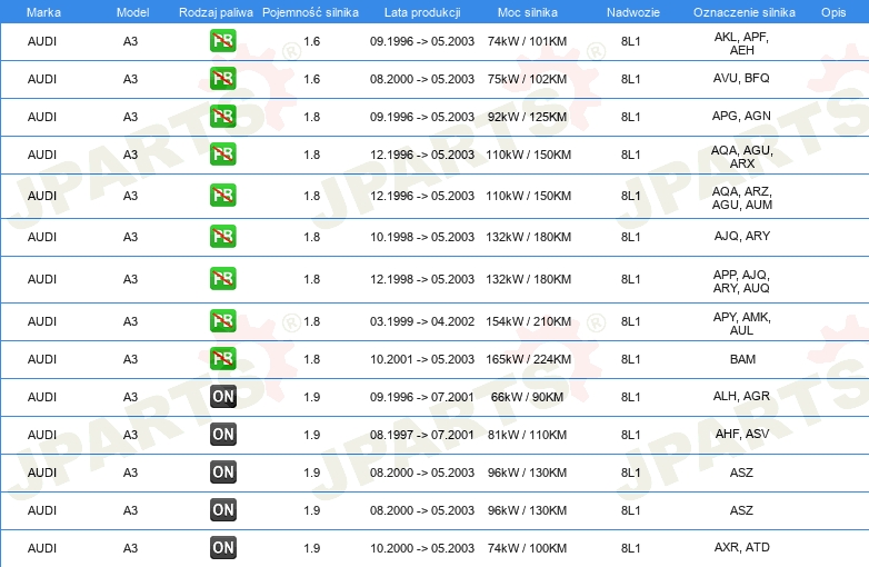 | Strona zabudowy: | z przodu z lewej |
