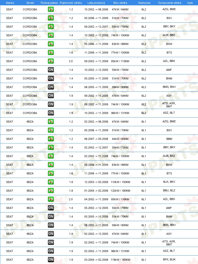 | Strona zabudowy: | z przodu po prawej |