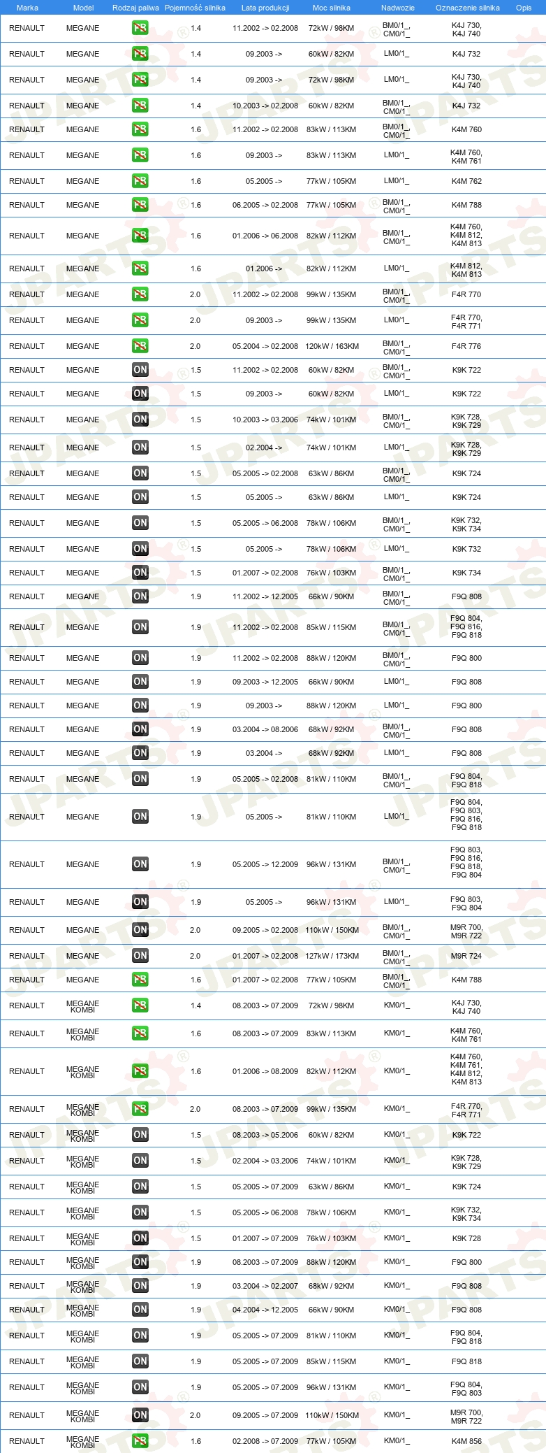 | Wyposażenie pojazdu: | dla pojazdów z funkcją automatyki podnośników szyb |