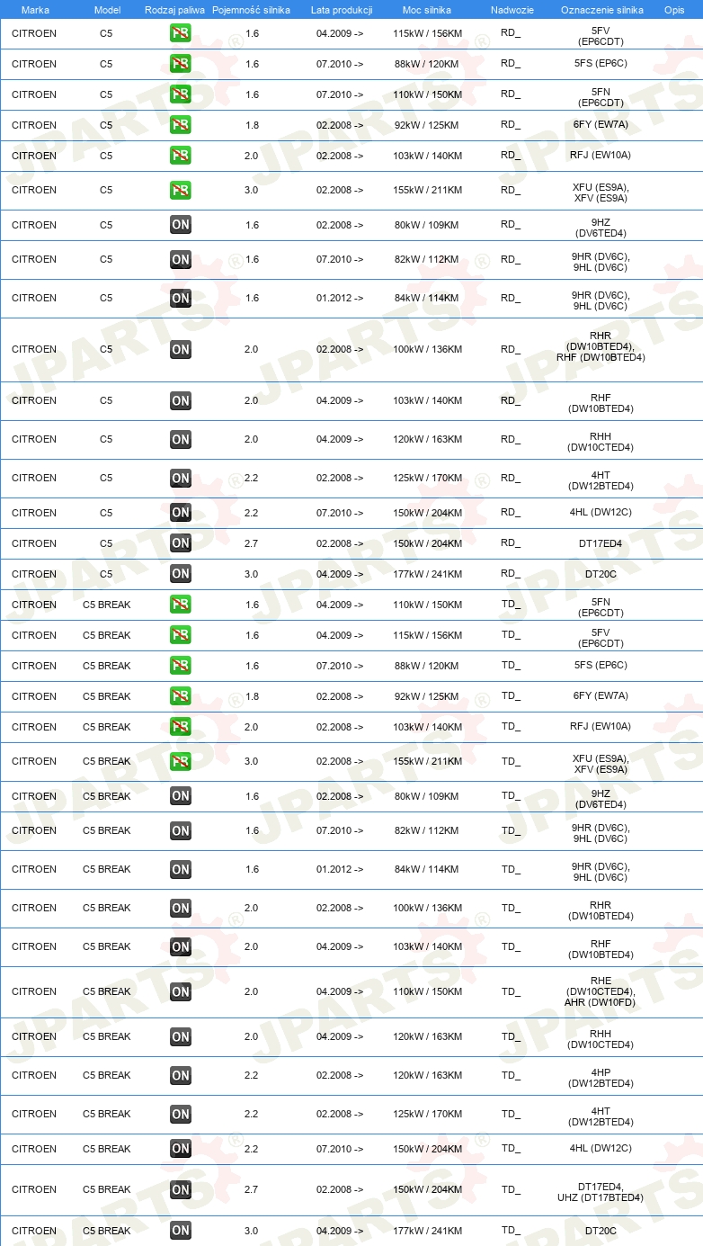 | Strona zabudowy: | z przodu z lewej |