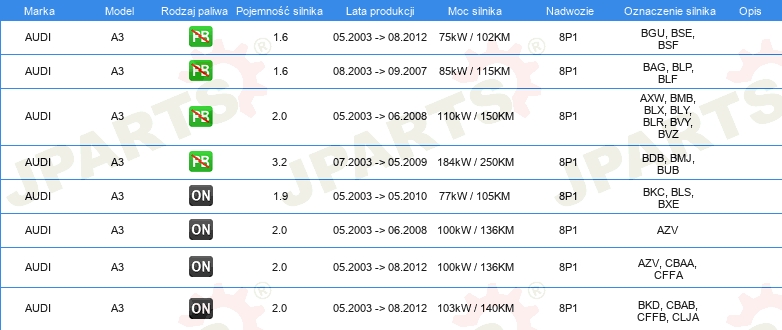Informacje o części