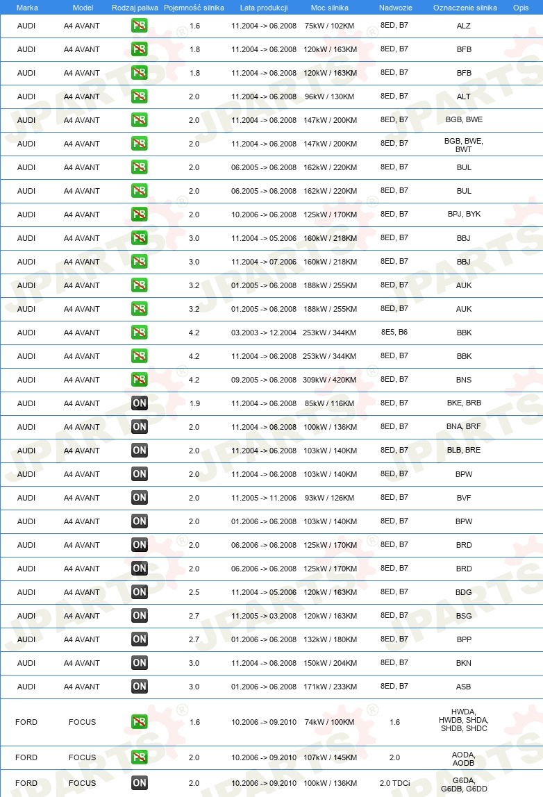 DLA WERSJI NADWOZIA: