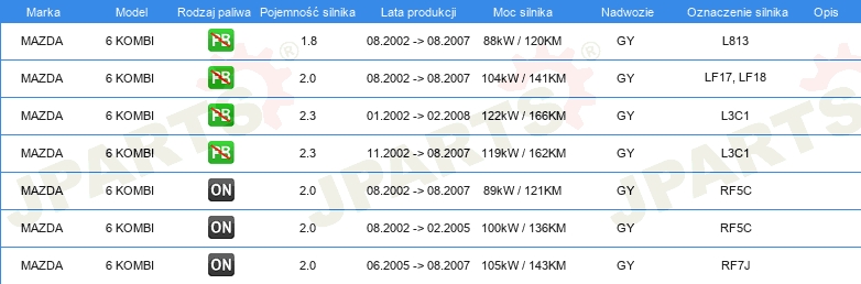 Informacje o części