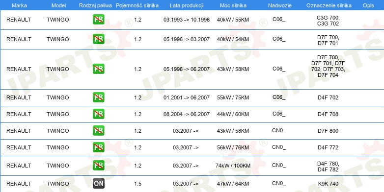 Informacje o części