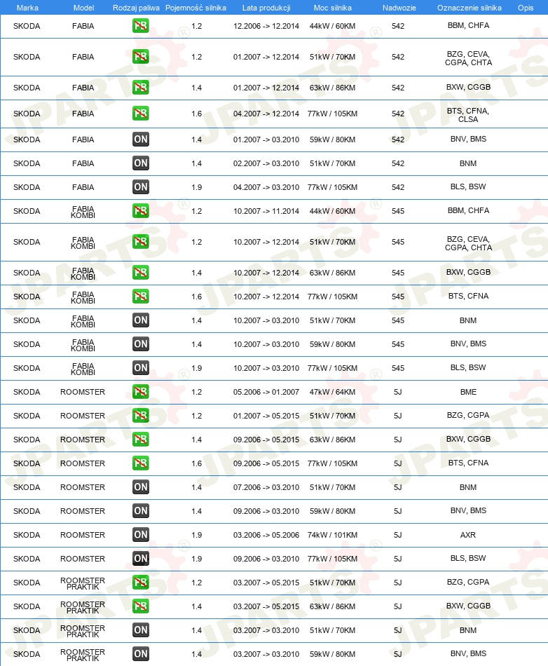 | Pojazd z kierownicą po lewej /prawej stronie: | dla pojazdu z kierownicą z lewej strony |