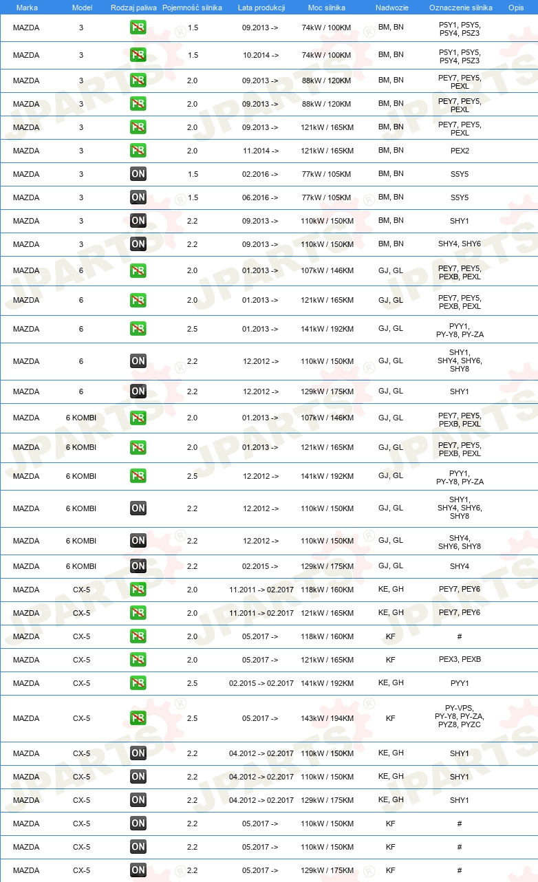 | 03 04 782 | FILTR KABINOWY | MAZDA | 159,52PLN | dostępny | Szczegóły |