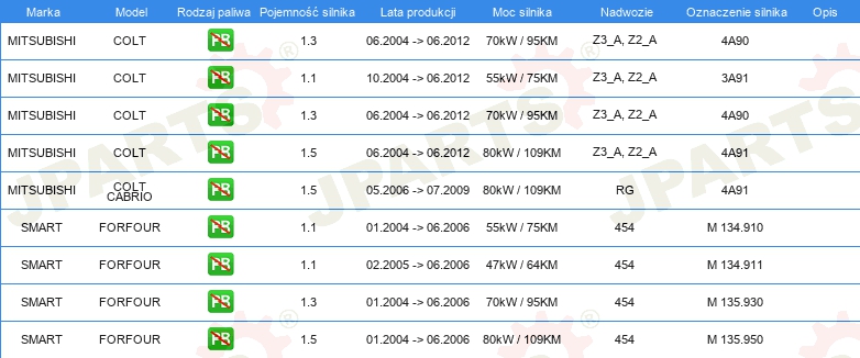 Informacje o części