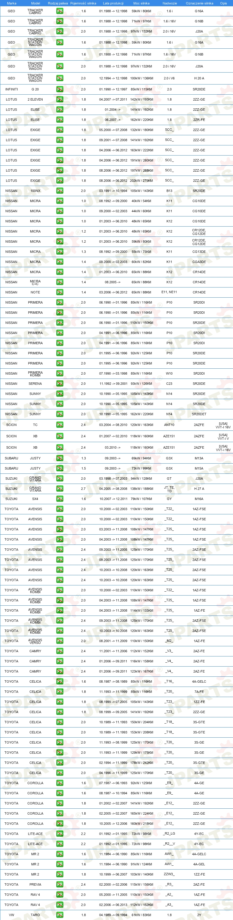 | 03 01 019 | FILTR OLEJU | JAPAN LINE | 12,21PLN | dostępny | Szczegóły | |