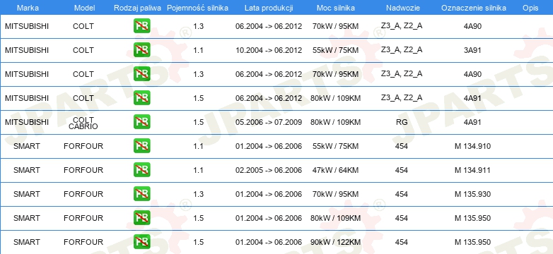 Informacje o części