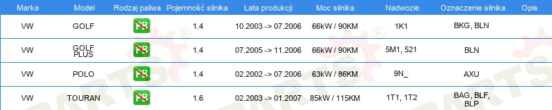 Informacje o części
