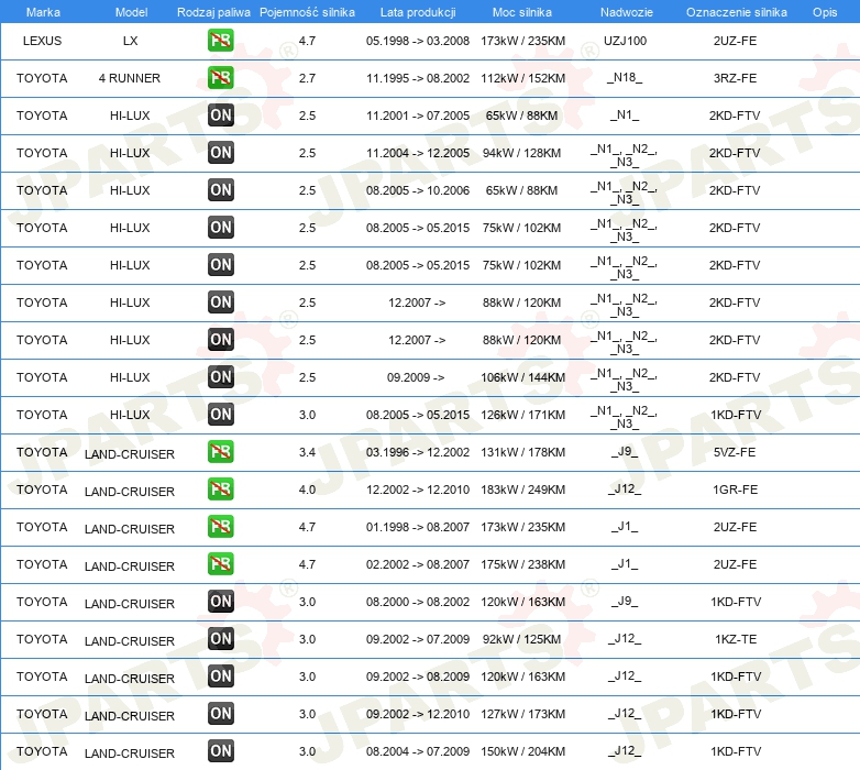 | Zalecany okres międzyprzeglądowy [km]: | 80000 km |
