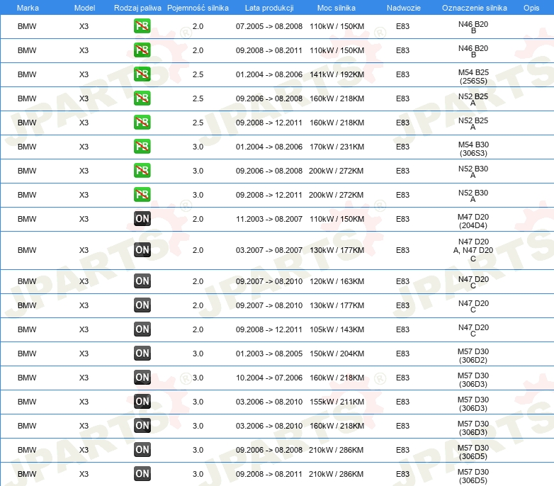 | Strona zabudowy: | oś przednia |