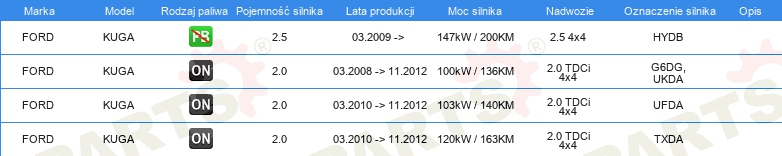 | Strona zabudowy: | oś tylna |