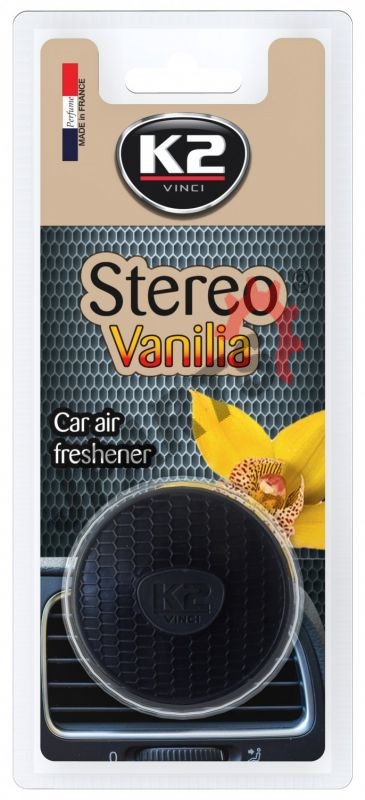 K2 STEREO to nasączona substancją zapachową włóknina, zamknięta w dyskretnej obudowie. Już w chwilę po zamontowaniu, wypełnia wnętrze aromatyczną wonią. K2 STEREO dostępny jest w ośmiu modnych wariantach zapachowych.