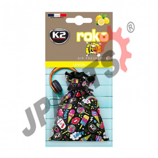 K2 ROKO FUN to odświeżacz powietrza w woreczku z unikatową grafiką. Bawełniany woreczek rozbawi Ciebie i Twoich pasażerów. Każdy z 6 odświeżających zapachów pozwoli poczuć się wyjątkowo, a kolorowy wzór graficzny wprawi w pozytywny nastrój.