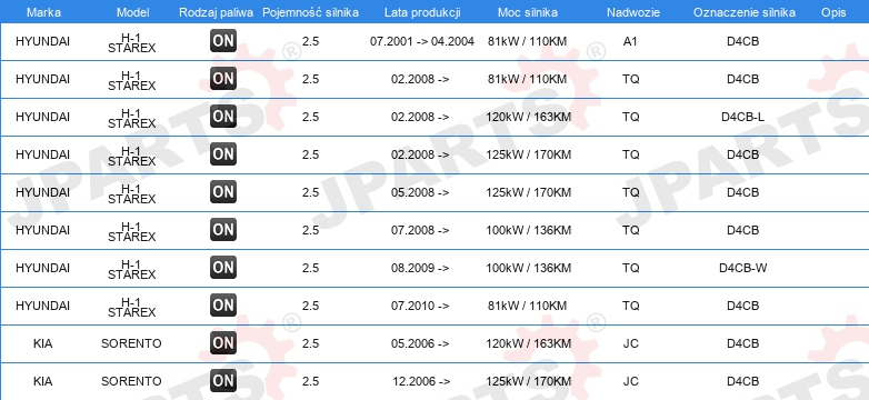 | Wyposażenie pojazdu: | dla pojazdów z manualną skrzynią biegów |