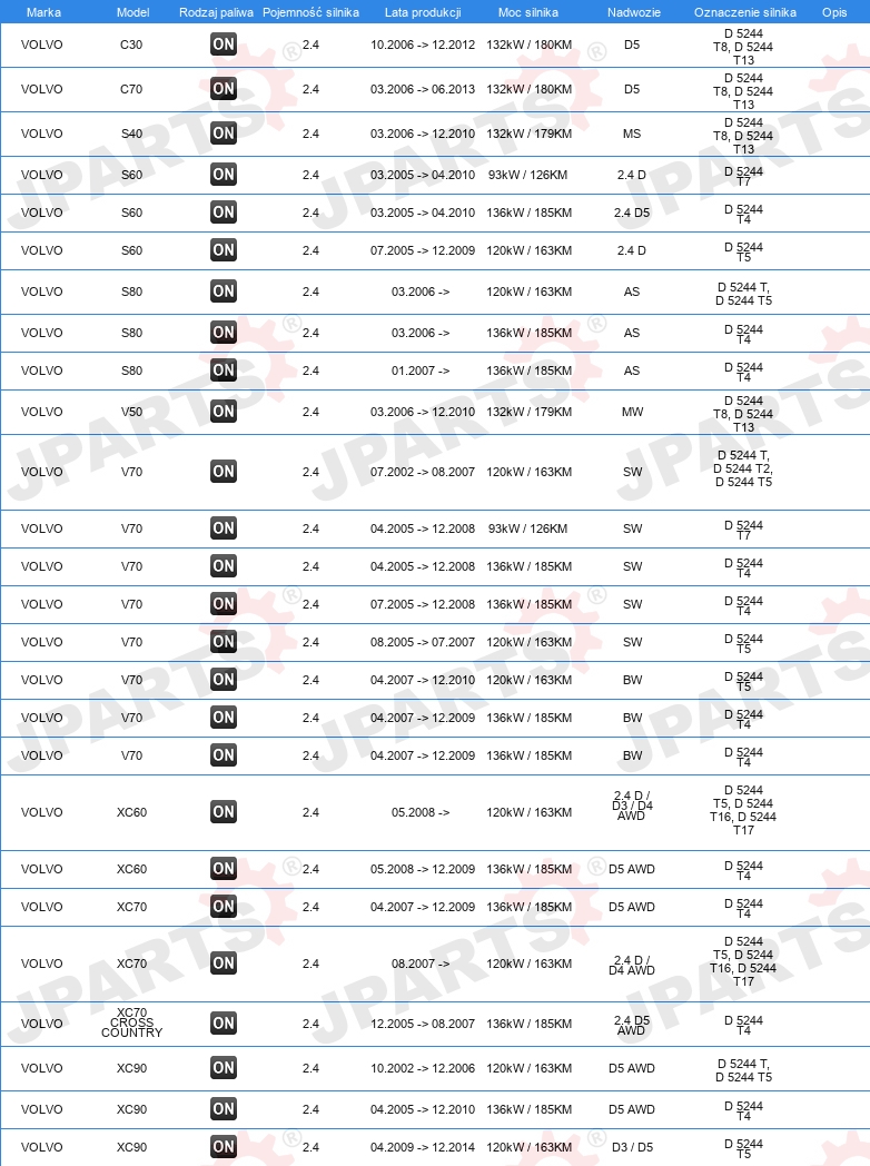 | Wersja silnika: | dla silników z kołem zamachowym dwumasowym |