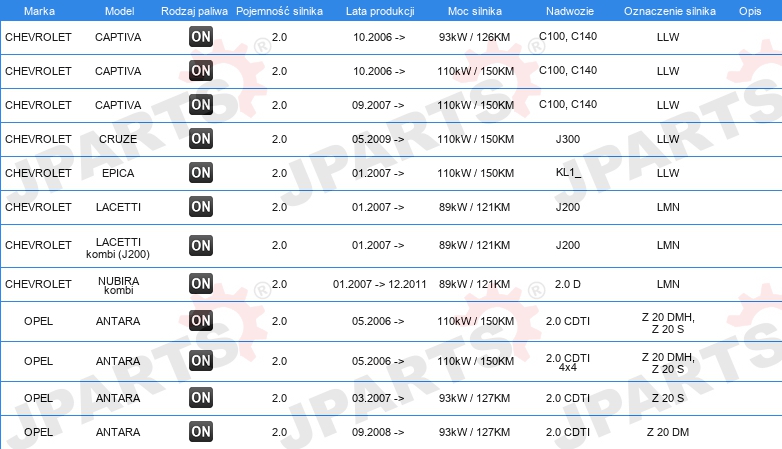 | Wersja silnika: | dla silników z kołem zamachowym dwumasowym |