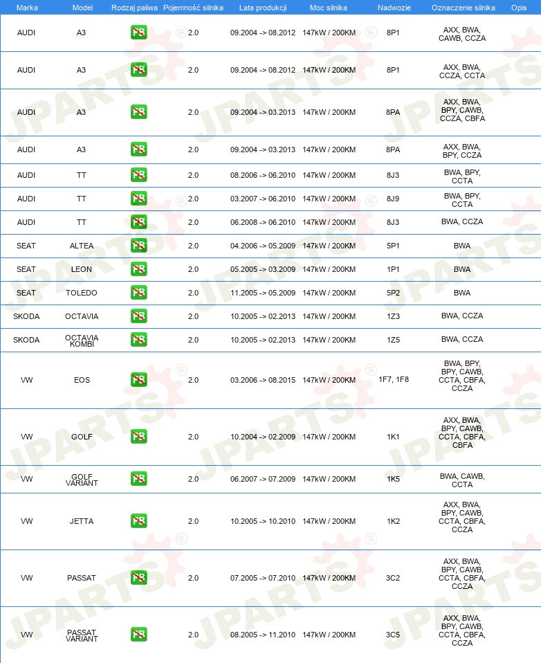 | Wersja silnika: | dla silników z kołem zamachowym dwumasowym |