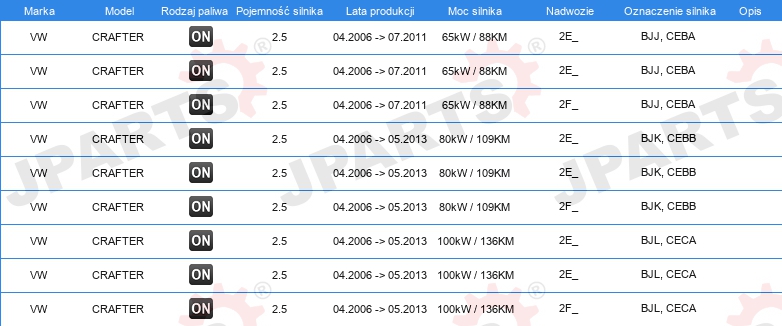 | Wersja silnika: | dla silników z kołem zamachowym dwumasowym |