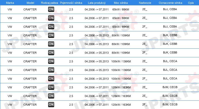 | Wersja silnika: | dla silników z kołem zamachowym dwumasowym |