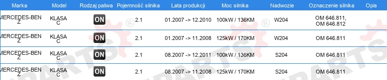 | Wersja silnika: | dla silników z kołem zamachowym dwumasowym |