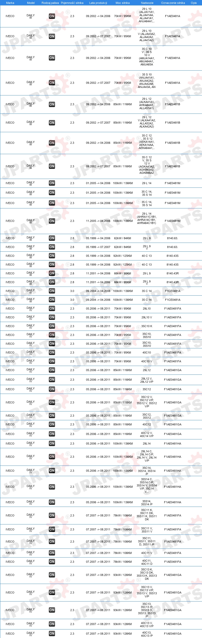 | Wersja silnika: | dla silników z kołem zamachowym dwumasowym |