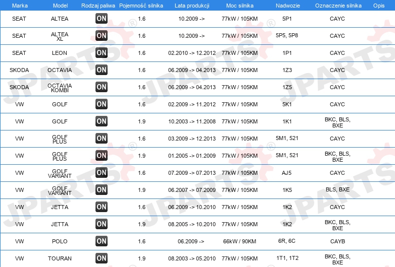 | Rodzaj sprzęgła: | dla sprzęgła suchego |