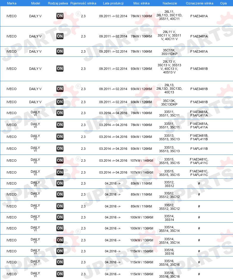 | Wersja silnika: | dla silników z kołem zamachowym dwumasowym |