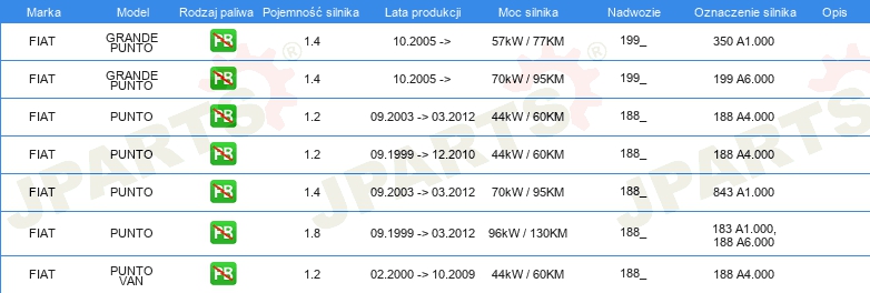 Informacje o części