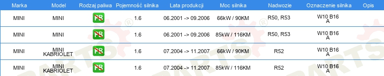 Informacje o części